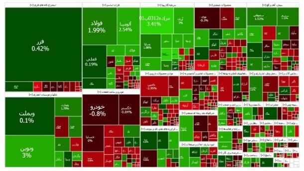 فولاد، فملی و شستا بیشترین تاثیر مثبت را بر شاخص بورس داشتند. از نمادهای پرتراکنش نیز میتوان به وبملت، خودرو و خساپا اشاره کرد.
