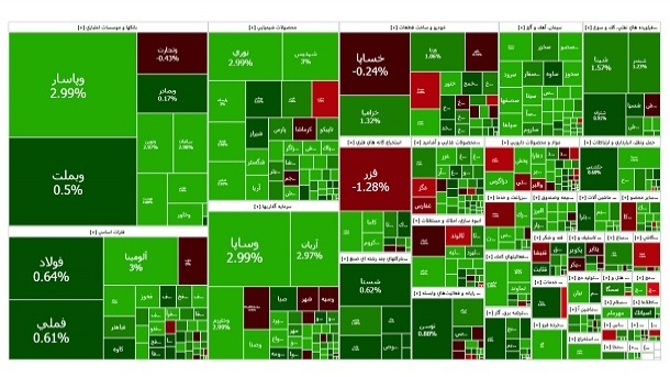 فارس، فملی و پارسیان بیشترین تاثیر مثبت را بر شاخص بورس داشتند. از نمادهای پرتراکنش نیز میتوان به خساپا، وبملت و وتجارت اشاره کرد.