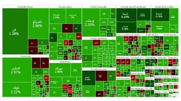 فملی، فولاد و پارسان به ترتیب بیشترین تاثیر مثبت را بر شاخص بورس داشتند. از نمادهای پرتراکنش نیز میتوان به داترا، وبملت و خودرو اشاره کرد.