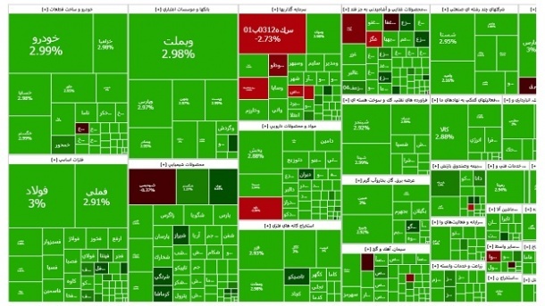 در جریان دادوستدهای امروز بازار سرمایه، بیش از 15 میلیارد و 103 میلیون سهم و حق تقدم بهارزشی بالغ بر 12هزار و 31 میلیارد تومان در بیش از 316هزار نوبت مورد دادوستد قرار گرفت و شاخص بورس با رشد 49هزار و 142واحدی در ارتفاع 2 میلیون و 331هزار و 201واحد قرار گرفت.