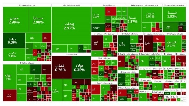 وبملت، نوری و پارسان بیشترین تاثیر مثبت را بر شاخص بورس داشتند. از نمادهای پرتراکنش نیز می‌توان به وبملت، محتشم و ذوب اشاره کرد.