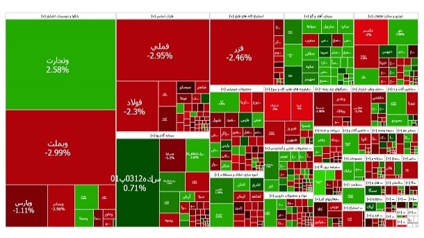 سه نماد فملی، فولاد و شپنا با مجموع اثر منفی ۱۱۴۴۶ واحدی مؤثرترین نمادهای بورسی بر افت شاخص کل بودند و رشد ۱۷۲۷ واحدی نماد فارس هم دردی از اصلاح شاخص کل بورس تهران دوا نکرد و نماد آریا با رشد ۷۲ واحدی و دو نماد فزر و زاگرس با مجموع اثر منفی ۲۷ واحدی پر تأثیرترین نمادها بر شاخص کل فرابورس هستند که نهایتاً موجب رشد ۳۴ واحدی شاخص کل فرابورس و افت ۳۲۸ واحدی شاخص کل هم وزن فرابورس شدند.