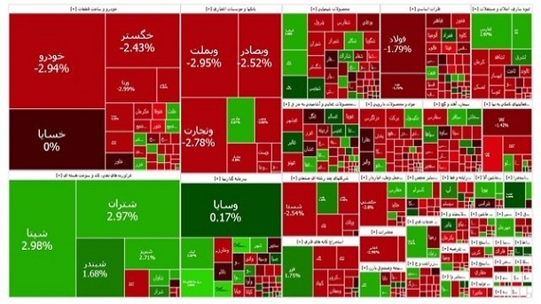 وبملت و فولاد بیشترین تاثیر منفی را بر شاخص بورس داشتند، اما شپنا اثر مثبت ایجاد کرد. از نمادهای پرتراکنش نیز میتوان به خودرو، خساپا و وتجارت اشاره کرد.