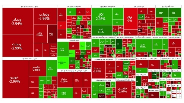 فارس، فولاد و وبملت بیشترین تاثیر منفی را بر شاخص بورس داشتند. از نمادهای پرتراکنش نیز می‌توان به خودرو، وبصادر و وتجارت اشاره کرد.