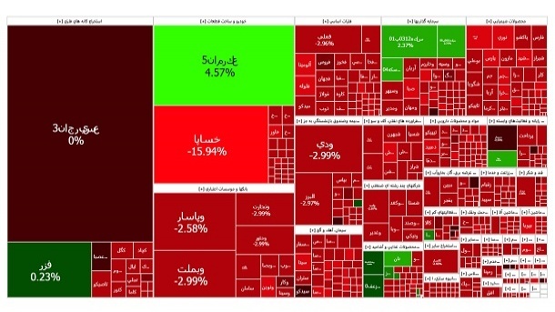 در این روز به ترتیب نمادهای فارس، فملی، فولاد و خساپا بیشترین تاثیر منفی را بر شاخص کل بازار سرمایه داشتند و عامل افت بازار سرمایه شدند.