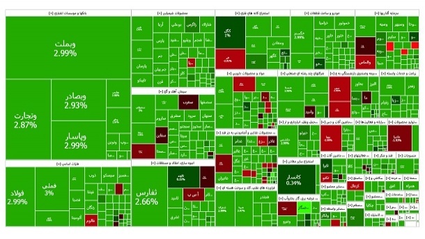 افزون بر این در جریان معاملات امروز بازار سرمایه، از 347نماد معاملاتی فعال در بورس، 89درصد معادل 308نماد معاملاتی مثبت و 11درصد معادل 39نماد منفی بودند. در فرابورس نیز از 382نماد فعال در این بازار، 68درصد معادل 258نماد معاملاتی مثبت و 32درصد معادل 124نماد منفی بودند.