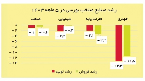 رشد 5 ماهه تولید و فروش صنایع بورسی هم منفی شد